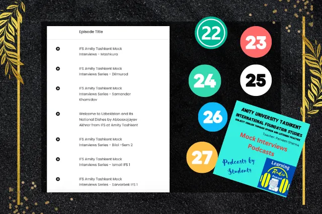 Educational Podcasting has been a journey of discovering rewards at each step. Listening to the podcasts done by my students at Amity University Noida from 2009-2015 fills my heart with immense joy. My pride in their work can not be matched by anything and anyone. At Amity Tashkent, the bright past is shining again with vibrant colours. EduPodcasts are back with a magical impact here!